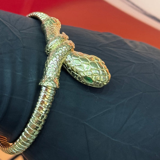 10K Yellow Gold 7Inch Snake Spring Cubic Zirconia Bracelet Approx. 18.3Grams