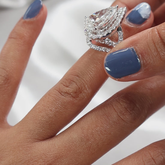 14K White Gold 7.82Ctw 6.04Ctr Lab Diamond F Vs1 Ring - Bridal Set.